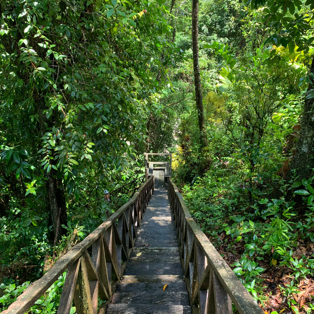 Acceso entre la vegetación: El hotel se conecta mediante senderos y escalones de madera que serpentean entre la densa vegetación característica de la región. Este recorrido, más que un acceso, es una experiencia sensorial donde se disfruta de la flora local y de panorámicas impresionantes.
